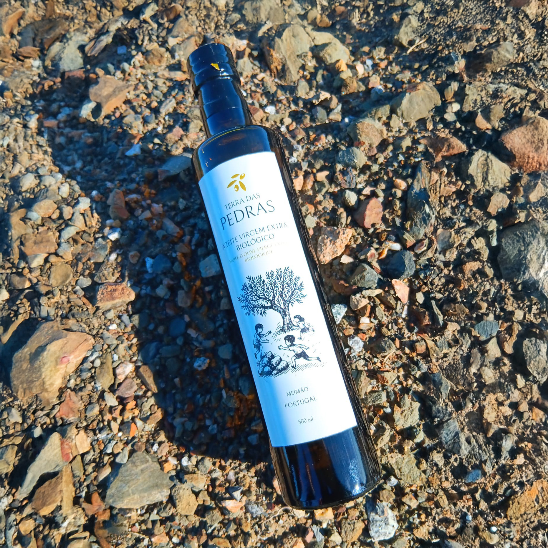 O Azeite Virgem Extra Biológico Terra das Pedras é um azeite português de categoria superior, produzido em Meimão a partir de azeitonas de agricultura biológica certificada e extraído apenas por processos mecânicos, com acidez máxima igual ou inferior a 0,2%.